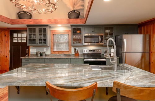 On 30-acre horse farm. Long winding driveway leads to secluded newly renovated Cabin with wraparound porch overlooking and nestled in-the lush forest with breathtaking views. Manicured hiking trails take you to the river where you can enjoy natures serenity. This is truly a peaceful and inspiring retreat! As you enter the cabin you will be pleasantly surprised with the elegant warm inviting interior. Uniquely furnished and designed for your total comfort and relaxation in mind...