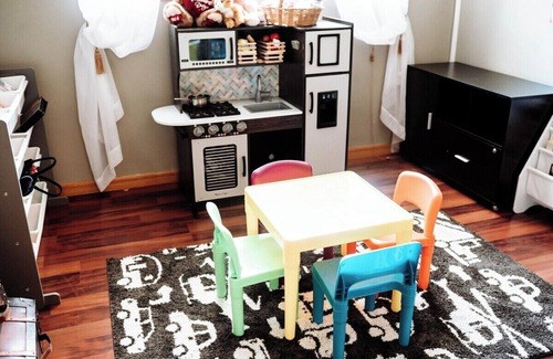 Relax with your loved ones at this perfect escape. This tranquil, single-level home is ideal for all ages and accessibility needs, making it perfect for families, friends, and large groups. Enjoy a cozy playroom with books, a drawing table, and a play kitchen for the little ones. The fully equipped kitchen includes a coffee maker, tea selection, blender, and all the cooking essentials. Step outside to a private playground and an outdoor dining area with a gas grill for family meals.