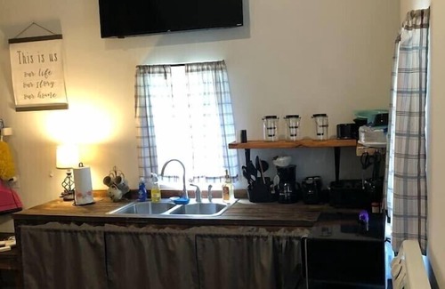 Rustic cabin in a quite, private setting with modern conveniences and design. Large yard with 2 acres of hillside to explore and take in the views. Cabin hosts amenities such as free WiFi, 55” smart TV in the main living area and two 42” smart tv’s in the sleeping areas, all with free Netflix. modern plumbing with heating and air conditioning. Large front deck overlooking creek, fire pit and one lane road with Very little traffic. refrigerator, full size stove, microwave, coffee maker, small appliances and all the utensils you will need. Cabin is thoroughly cleaned prior to each visit with all fresh bedding and towels provided. Just bring your favorite food and luggage and settle in for a relaxing stay.... this cabin has everything you will need.