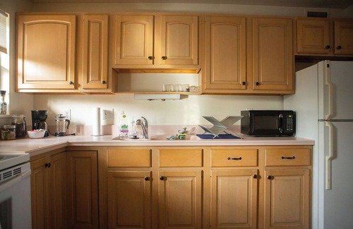 Filled with natural light and fresh air that matches the light color scheme and comfortable decor. This space has two bedrooms both with queen beds, empty closets, a dresser, and full-length mirrors. A spacious bathroom with a shower and tub and a large kitchen with a cozy breakfast nook. Giving couples, friends, business travelers, and families everything they need for an overnight or extended stay. Take advantage of the shared back patio and enjoy your cup of coffee in the peaceful surroundings.