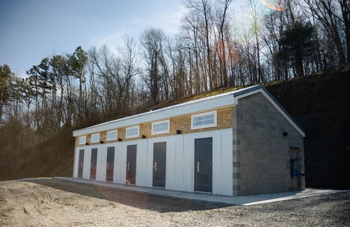 After a busy day of exploring the lush trails and private lake, guests can experience the unique shower house in the hills that features private marble showers and modern interior designs. (Access to the shower house from the cabins is ~50 yards hike.)