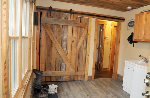 Once your day is complete and you are ready to relax, step inside the cabin for some needed downtime and chill out in the cabin that is complete with central air conditioning and huge overhead fans that hang from the vaulted cedar-planked ceiling.
