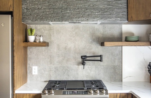 The whole group will enjoy easy access to everything from this centrally located place. This home has been redesigned with the intention of creating an Oasis for you to enjoy whilst visiting beautiful Amish Country! We added luxuries to spoil you and leave you so relaxed that you won't want to leave! We are also close to many local attractions in this area!! Walking distance from Park Street Pizza! When you arrive you can park in the main concrete driveway or we have extra concrete parking above the garage with a well lit concrete sidewalk leading you to the back entrance. The main entrance is the back door which will lead you into the main living space of the home....The living room has a cozy sectional sofa, a large TV and is open to the kitchen. The custom kitchen has high end appliances and finishing's... fully stocked for all your cooking needs! The kitchen leads into the dining room area that has a table with seating for 6 and lots of windows for enjoying the outdoor views. There is also a sitting nook by a fireplace for enjoying your morning coffee. The Master Bedroom has a king bed and is located on the main floor. The ensuite bath has a soaker tub and a large walk in tile shower with heated floors. Enjoy a heated towel rack and dimmers on the lighting to create a spa like experience during your stay! The first floor laundry has a stacked washer and dryer and is located off the bedroom as well with access to the outdoor living space. Upstairs you will find another washer and dryer for your convenience. There is a workspace with a desk set up in the open area if you need a private spot to get some work done while visiting. There are two bedrooms upstairs, each with King beds and there own full baths. You will have a walk-in tile shower and heated towel warmers and access to outdoor rooftop sitting area to enjoy! Enjoy the outdoors from the second level! Did I mention that there are 3 bidets in this house as well with heated seats! The garage has been converted into a game room area with a pool table, a small kitchenette and a card playing table. There is also a TV in the garage for all the entertainment you might need! The outdoor area has a covered roof with a hot tub, fire-pit and comfortable seating for you and your party to enjoy! There is also an outdoor TV in this area , perfect for watching sporting events whilst enjoying the outdoors at the same time! A dining table for 6 and a gas BBQ grill is also included under this pavilion for the ultimate outdoor dining experience! We hope you enjoy all the luxuries this place has to offer and you go home feeling renewed and refreshed!!