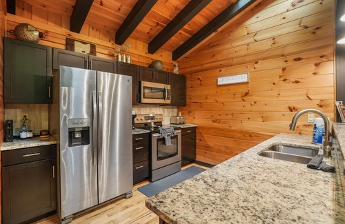 Modern contemporary log home located on five acres of peace and serenity. The all-glass windows and upper and lower decks provide breath-taking views of the ravine below, as well as, the treetops and stars above. The “Outside Inn” will make you feel like you are outside while in the comfort of a “hotel in the woods.” In the fall, the tree tops turn to a colorful array of stunning fall colors. Wake up in the wintertime to ice-capped tree branches or a deck covered fresh snow glistening in the sun. At Christmas time, the cabin is typically decorated from the end of November until the week after New Years Day. Drive a short distance to enjoy all the famous hiking locations that draw people to this area. Must be 25 years or older to rent. AWD/4WD Recommended.