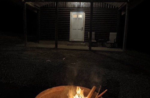Escape to this love themed cabin in the quiet countryside. This enchanting retreat features a cozy open area log cabin with 1 queen bed and 1 sofa bed, perfect for unwinding after a day of exploring. With amenities like central air conditioning, heat, WiFi, and smart TV, you will feel right at home. Kitchenette area features an apartment size refrigerator with freezer, microwave, coffee pot and a nice round table with seating for 4. The bathroom is stocked with all the essentials you need. The front covered porch features a couch and a hanging swing and it's just a few feet from a huge fire pit with free firewood! Private back deck faces woods and has outdoor furniture for enjoying scenery.