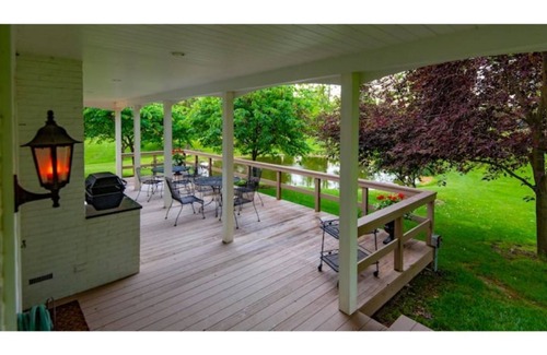 A car collector's paradise reimagined into a beautiful guest house situated on 20 acres of manicured landscape, pond, and woods. Lodging includes a deck with built-in grill overlooking the trees and wildlife where guests can enjoy their morning coffee or a private BBQ. Toast marshmallows at the fire pit or play a game of Pickleball, too.