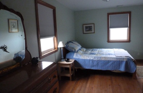 Sunnyside Retreat (sleeps 30) sits on 105 acre cattle farm, a charming spacious House. Beautiful countryside views from every window and a porch with plentiful seating to relax and socialize. A beautiful (2000 sq ft) wood decor Event Hall within steps of the house (boardwalk between then). Woods, trails, butterflies, meadows - serene and lovely. event center with 3 ping pong tables, 1.5 acre stocked pond, fire pit, (firepit) , volleyball basketball, and badminton, cornhole, soccer. Inside there's a piano, bumper pool, foosball & poker table. Main floor No-steps bedroom- very Handicap friendly.