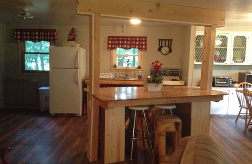 Country home in the woods, 4 Bedroom, 2 full baths 1600 sq. ft. sleeps 9. Upper level is open plan great room with full kitchen, stove, microwave , toaster oven, coffee pot, island bar and dining table. The living room area has a couch and two recliners and an electric fireplace to enjoy as you relax watching T.V. or movies. Four bedrooms on upper level, 1 queen bed, 1 full and 2 twin beds. Walk out full basement rec room with 1 full bed, 1 twin bed and a futon. There is a dig dug arcade game, two foosball tables, air hockey, T.V., hundreds of family and classic videos, board games. Living area with group seating for 9. Open concept basement is accommodating for celebrations, events, retreats, gatherings, holidays, and get togethers. There are two full bathrooms, one on each level. Washer/dryer, iron and ironing board. A park like setting in the woods, with picnic table, gas grill, and fire ring for creating family memories at the evening camp fire. White-tailed deer and wild turkey sightings abound in the area. Three miles from Tappan Lake Park, 2 miles from Clendening Lake. Step back in time and visit the 120 year old Deersville General Store where you can indulge yourself in 12 flavors of world famous homemade ice cream. While you're here, come enjoy time at Tappan or Clendening lakes with swimming, boating, fishing, hiking or just relaxing on the porch swing as the setting sun streams through the tall trees. There's something for everyone to enjoy on your get-a-way.